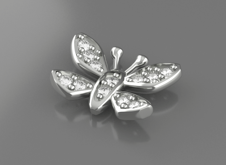 체적 명령을 적용해 볼 개체는 큐빅이 박힌 나비 장식입니다. 예전에 갑자기 나비 모양이 만들고 싶어져서 해두었는데 딱히 사용할 데가 없어서 가져왔습니다. 가로 10mm, 세로 8mm 크기이며 반지, 목걸이, 귀걸이에 응용할 수 있을 것 같습니다.
