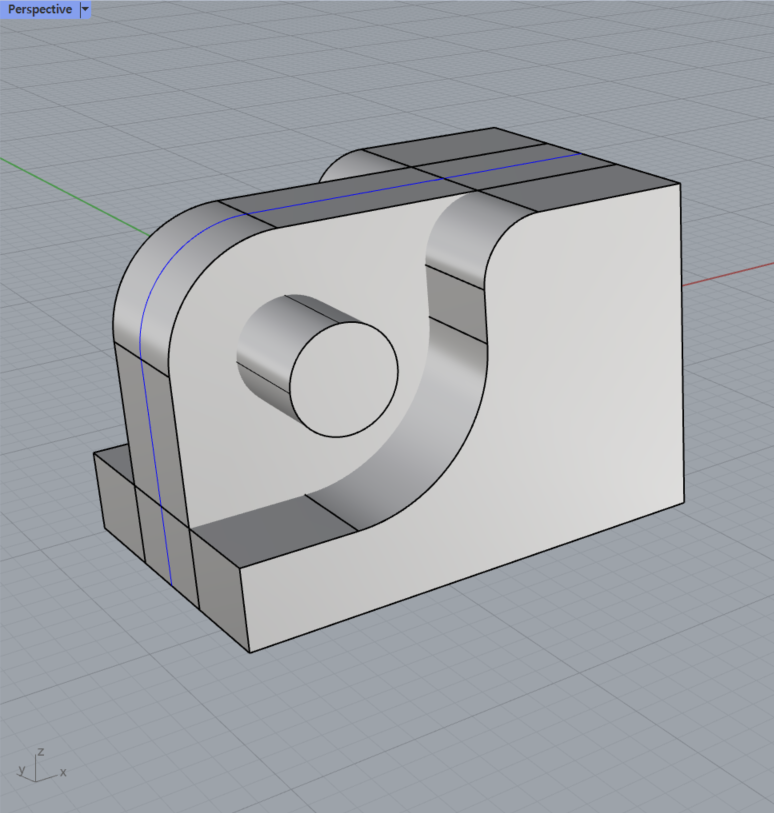 20. 돌출 세 개를 모두 선택한 뒤, '부울 합집합' 명령을 사용하여 하나의 폴리서피스로 만들어준다.